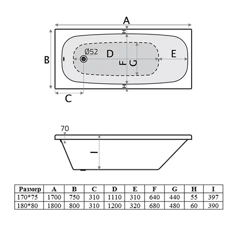 Ванна акриловая Vincea VBT-2S170