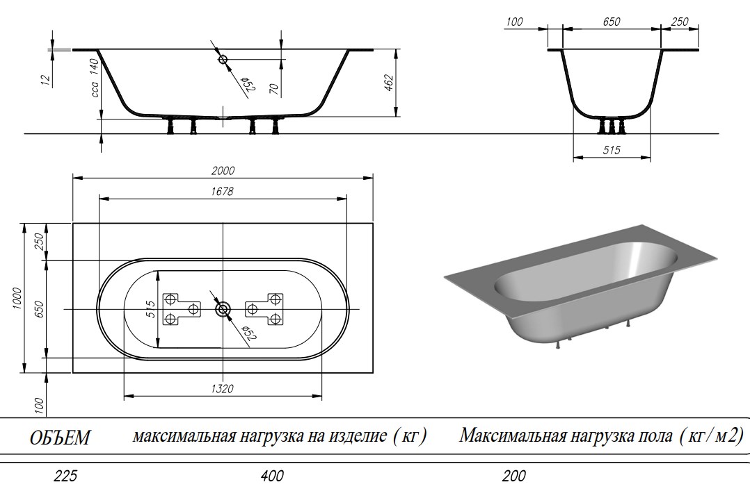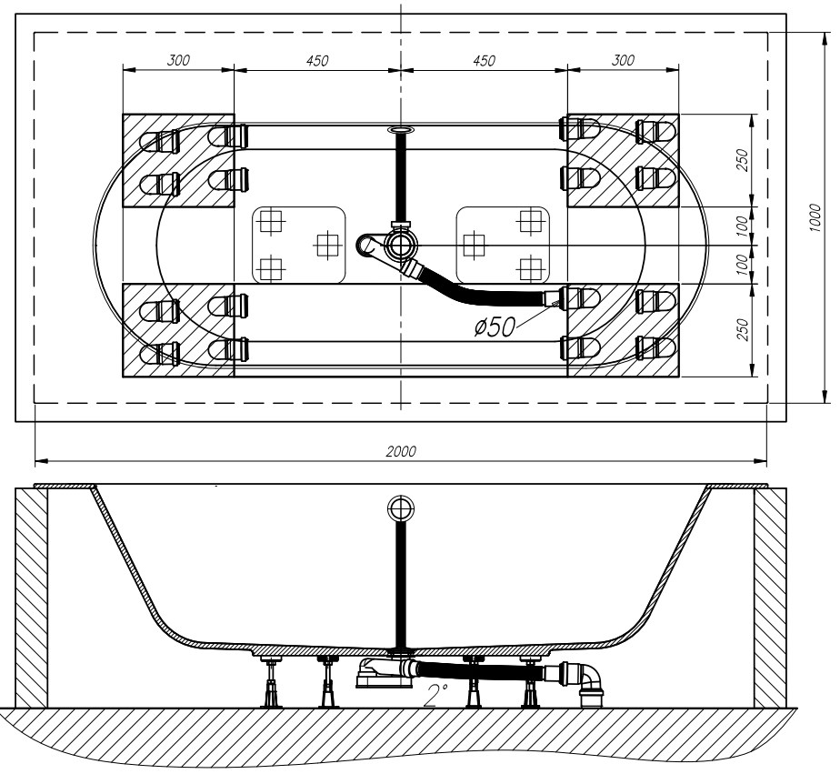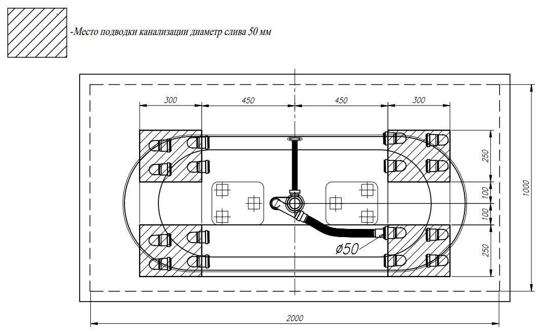 Ванна поставляется в собранном виде на ножках со сливом-переливом.
