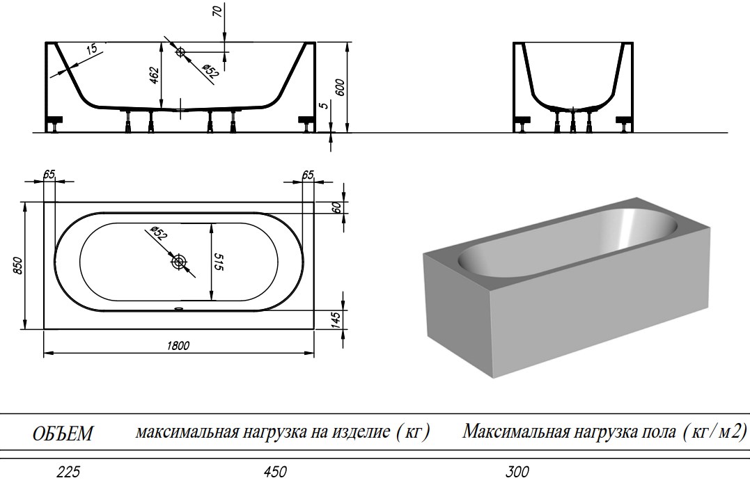Чаша ATYS-FS представлена в едином размере 180x85, но её борт может быть выполнен в любом размере по вашему желанию.