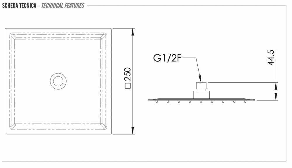 Верхний душ с шарнирным соединением 25 см Remer 357UFS25BOX, белый матовый купить в Гродно, цена