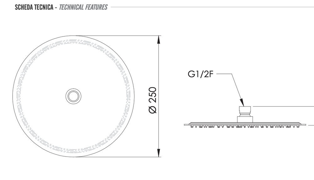 Верхний душ с шарнирным соединением 25 см Remer INOX SS357UFM25X, нержавеющая сталь купить в Гродно, цена